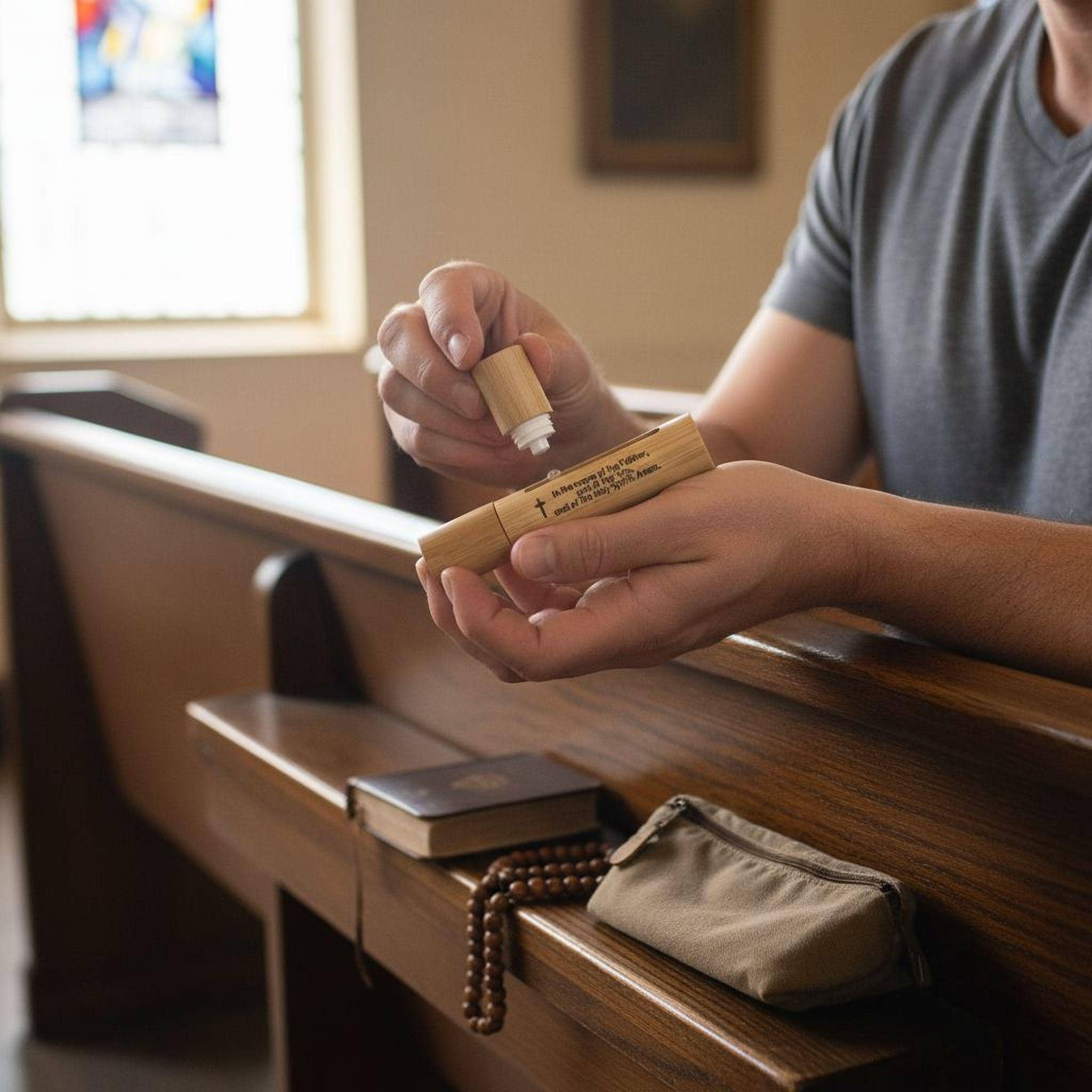 Discover the serene beauty of our natural sandalwood anointing oil holder, thoughtfully designed for those who cherish spiritual rituals and discreetly carry their faith. This elegant essential oil holder features a laser-engraved Christian prayer, blending devotion with craftsmanship in a TSA compliant size perfect for travel. Whether for baptism ritual or personal reflection, this anointing vessel offers a sacred way to keep your prayer oil close.