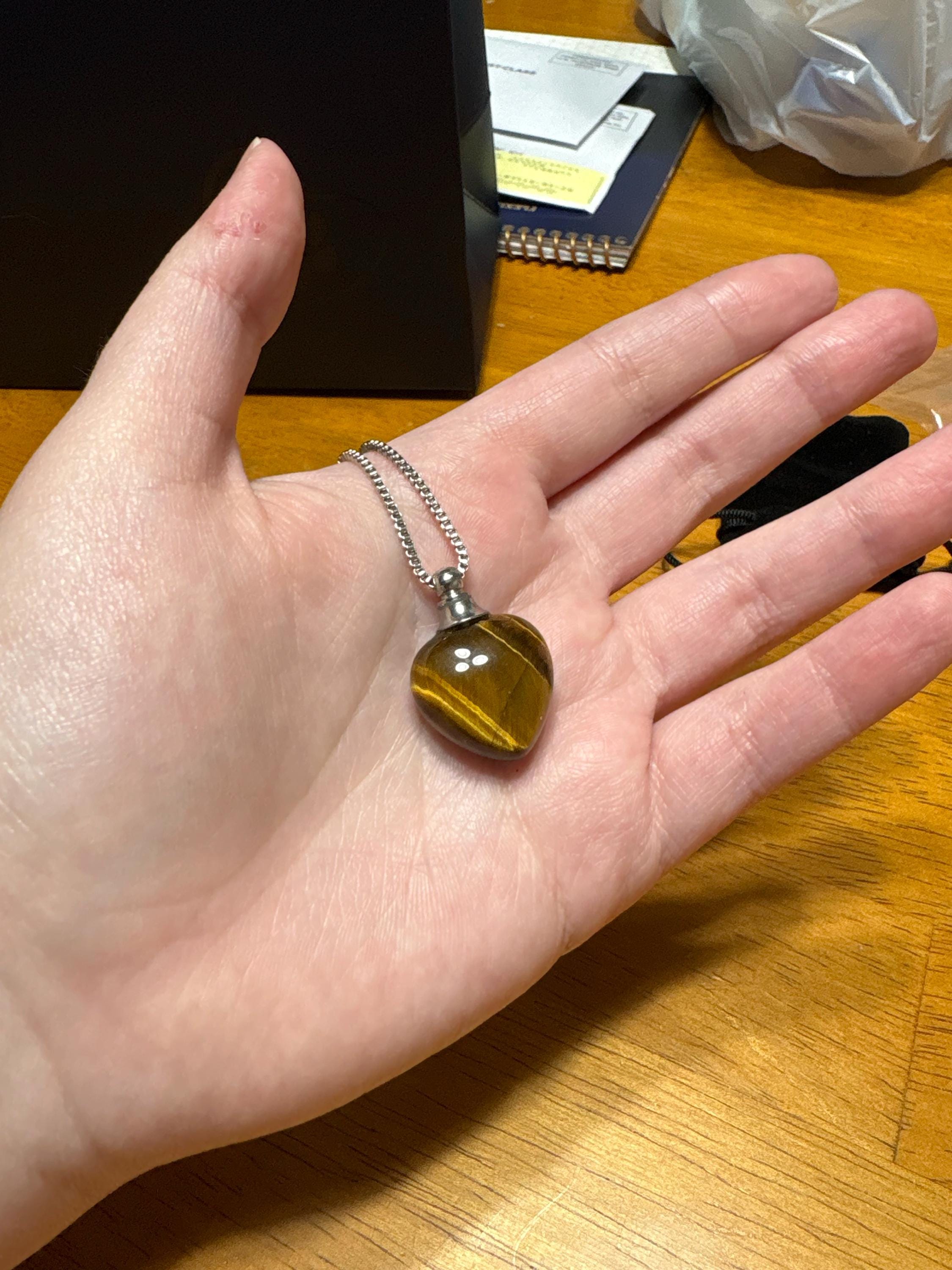 Beautiful Natural Tiger Eye Heart Gemstone CREMATION URN with 24" Steel Curb Chain Necklace - Includes Velvet Pouch & Fill Kit