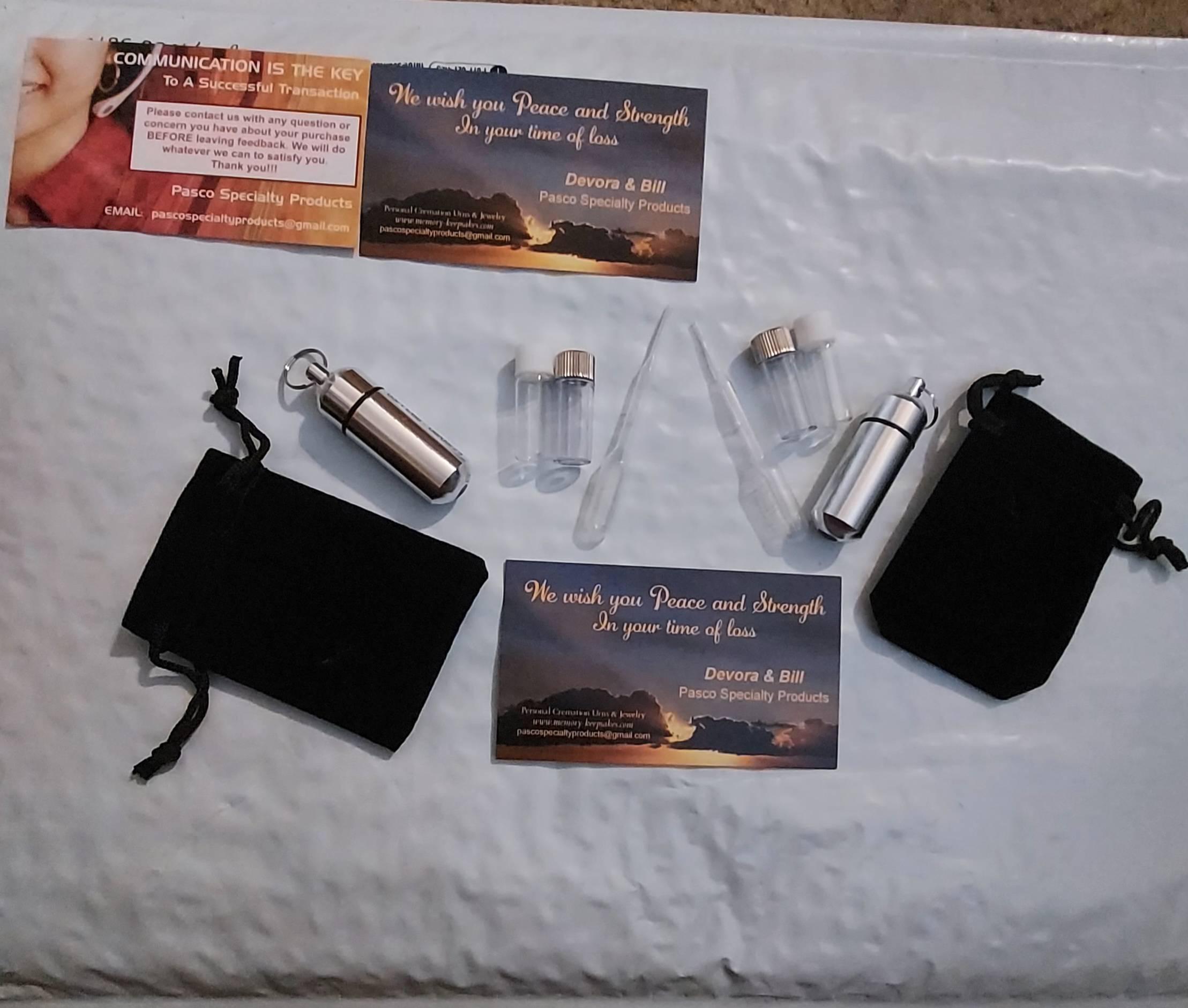 Our cremation urn jewelry keepsakes, necklaces, and cremation sets are created & polished and packaged by hand with loving care . They are simple & discreet mementos of a loved one that will keep them close to your heart forever. Each one comes complete with an individual velvet pouch, disposable fill kit, and makes a cherished gift for those who are grieving. Please look at our hundreds of styles in our shop. We also do personalization and custom work.