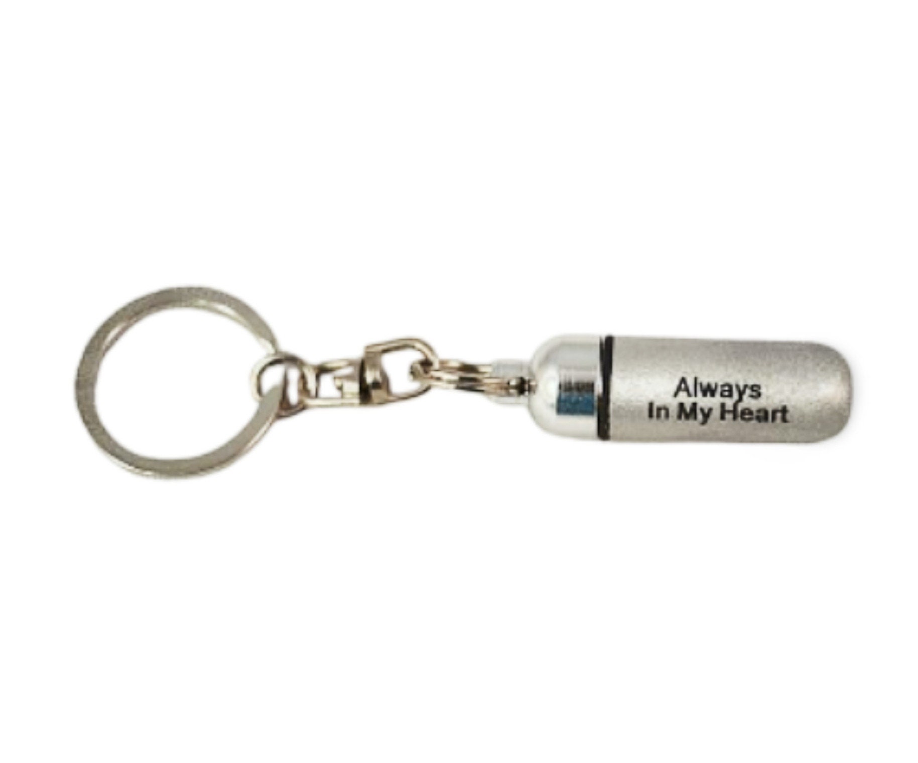 Sturdy, discreet, and secure, this Urn is 1-3/4 inches tall and has a small clear container inside to hold a small amount of your loved ones ashes. Keep them close to you always. Urn is made of aircraft-grade anodized aluminum and will last forever. The urn unscrews to reveal the storage chamber. Inside there is a clear container to keep the ashes safe and dry. A rubber gasket on the screw-on cap provides a waterproof seal. These urns are strong and lightweight enough to carry every day and fits nicely on a keyring or a necklace.