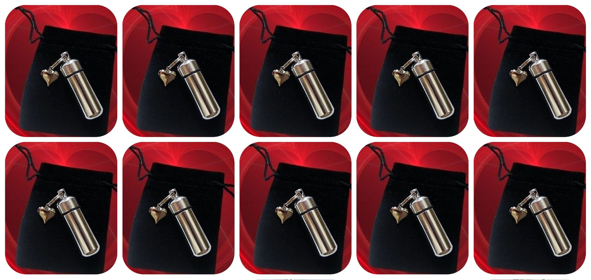 YOU GET TEN CREMATION URN KEEPSAKES, TEN VELVET POUCHES, & FILL KIT.