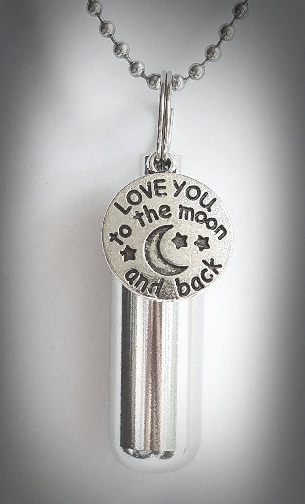 Sturdy, discreet, and secure, this Urn is 1-3/4 inches tall and has a small clear container inside to hold a small amount of your loved ones ashes. Keep them close to you always. It is made of aircraft grade anodized aluminum, and will virtually last forever. The urn unscrews to reveal the storage chamber. Inside there is a clear container to keep your loved one's ashes safe and dry. A rubber gasket on the screw-on cap provides a waterproof seal. These urns are strong and lightweight enough to carry every day and fits nicely on a keyring or a necklace.