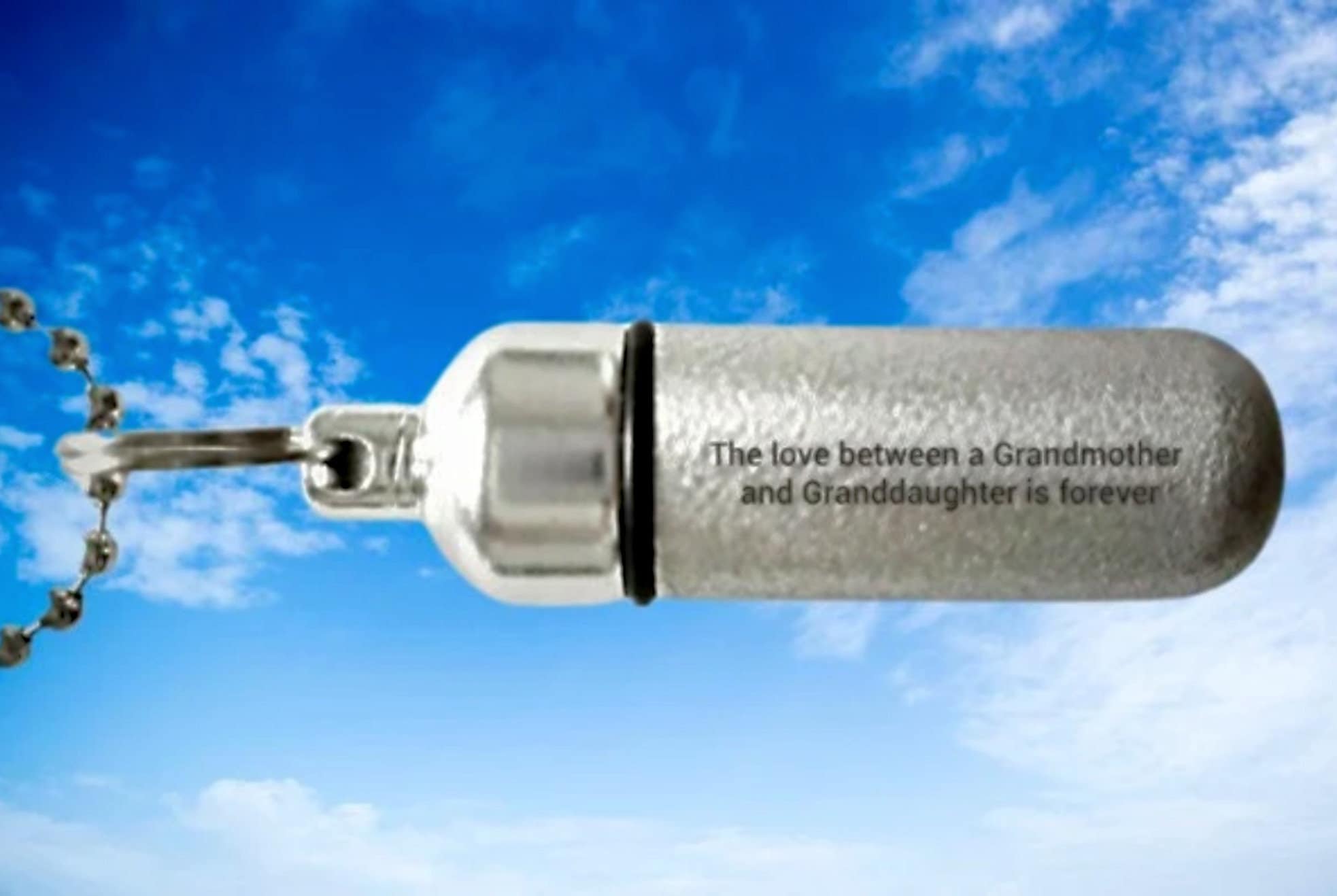 Sturdy, discreet, and secure, this Urn is 1-3/4 inches tall and has a small clear container inside to hold a small amount of your loved ones ashes. Keep them close to you always. Urn is made of aircraft-grade anodized aluminum and will last forever. The urn unscrews to reveal the storage chamber. Inside there is a clear container to keep the ashes safe and dry. A rubber gasket on the screw-on cap provides a waterproof seal. These urns are strong and lightweight enough to carry every day and fits nicely on a keyring or a necklace.