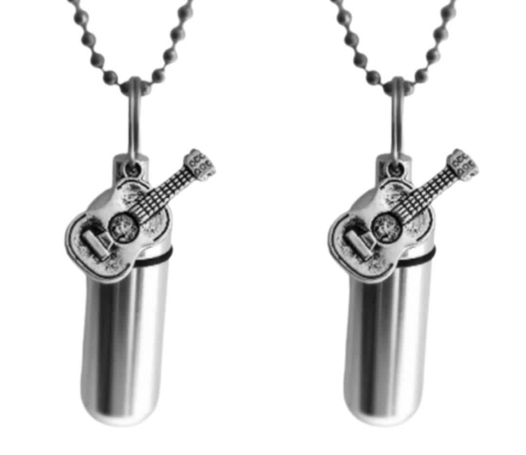 Silver Cremation Urn & container with Silver Acoustic Guitars
