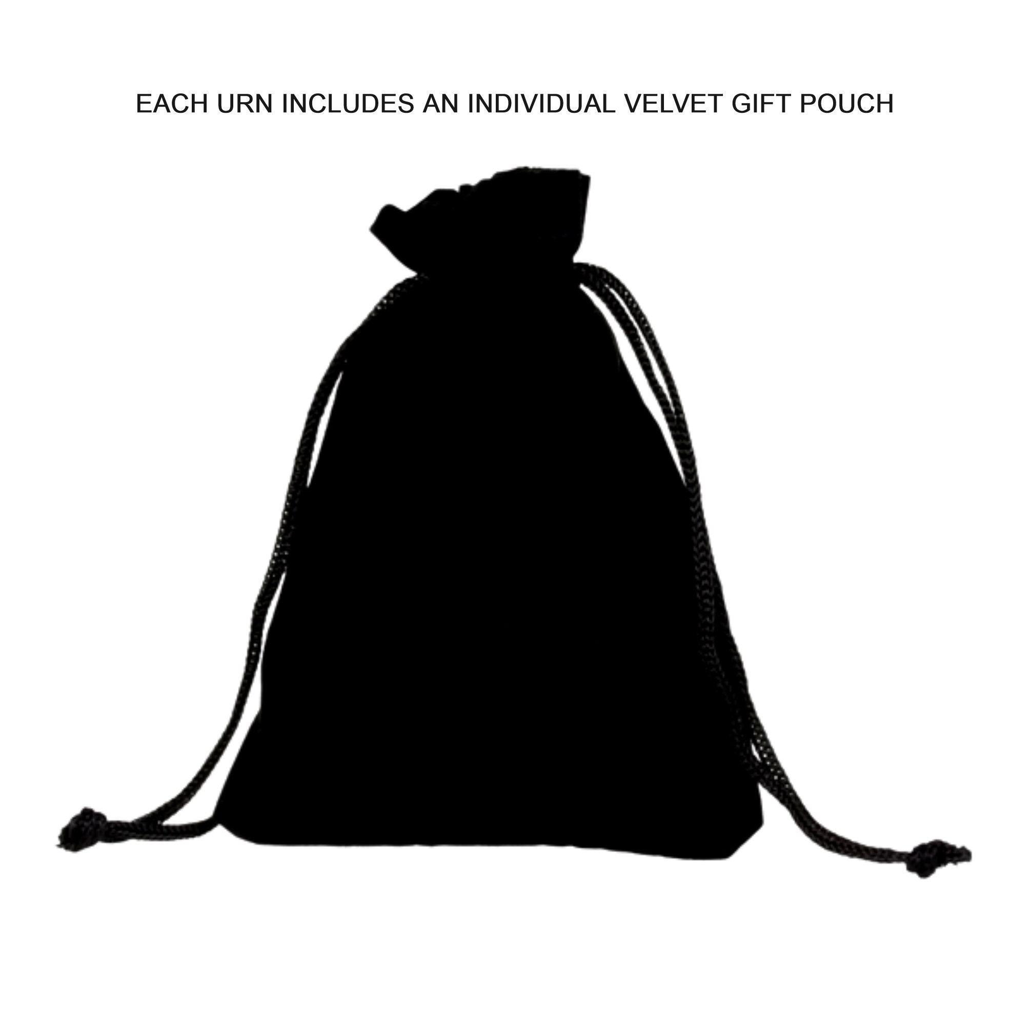 * Our beautiful and functional cremation urn memorial necklaces are the perfect way to keep your loved one close to your heart. Made of aircraft-grade anodized aluminum, they are discreet, secure, and will virtually last forever. A rubber gasket on the screw-on cap provides a waterproof seal. The urn unscrews to reveal the storage chamber, which holds a clear poly-carbon airtight container to keep the ashes safe and dry. Measuring 1-3/4" x 5/8", these urns are very strong, but lightweight enough to carry every day, and they fit nicely on a necklace or key chain. Each set comes complete with individual velvet drawstring pouches, a disposable fill kit, and makes a cherished gift for those who are grieving.
